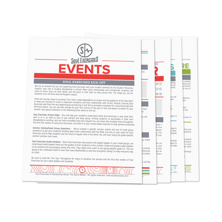 Receive physical Soul Exercises guides for every student and leader in your ministry to maximize discipleship and growth.